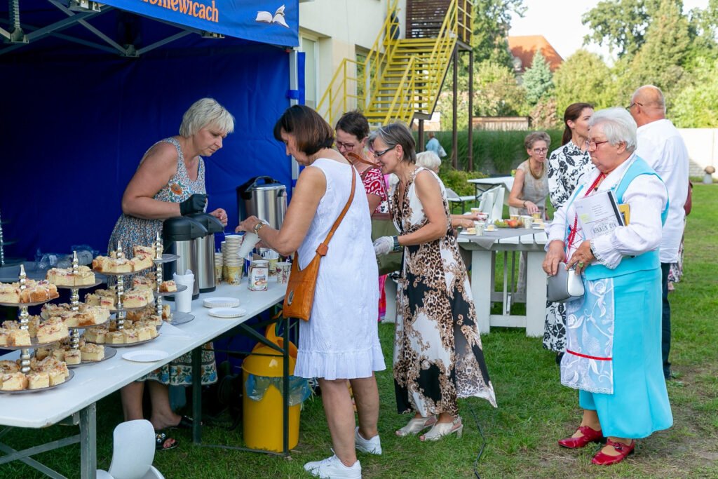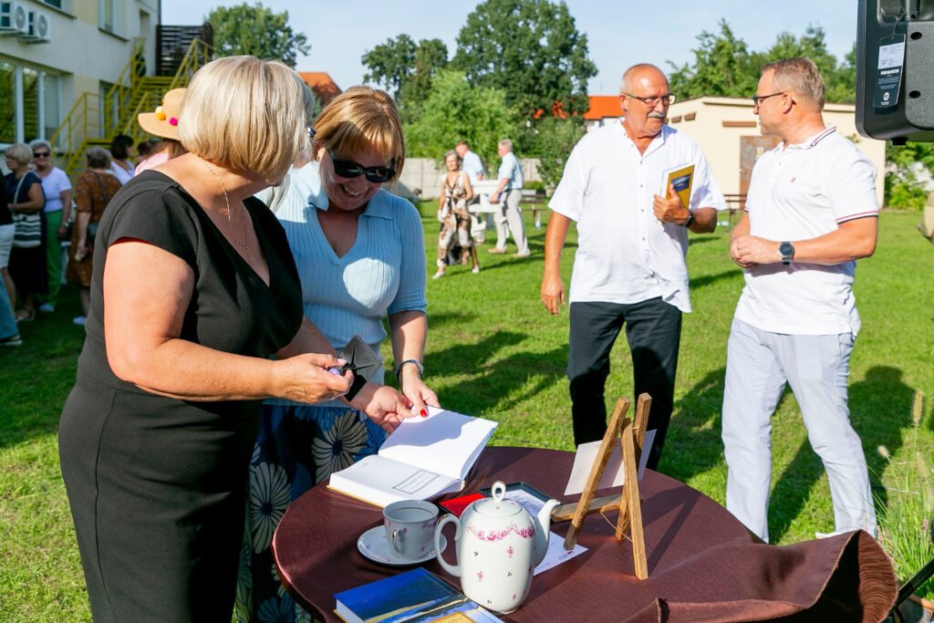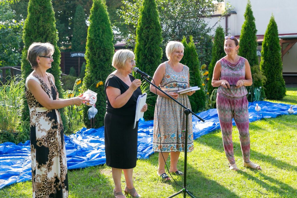 Wszystko to co wydarzyło się wczoraj jest już historią! Powspominajmy więc i my. 9 września br. przy iście letniej pogodzie w pięknej scenerii, o godzinie 15.00 rozpoczęło się Narodowe Czytanie „Nad Niemnem” Elizy Orzeszkowej, zorganizowane przez Gminna Biblioteka Publiczna Rakoniewice. Zebrani uczestnicy mogli posłuchać fragmentów powieści czytanych przez lektorów: Janusza Pietrzaka, Janinę Wurst, Huberta Kolera, Katarzynę Krysmann i Dorotę Lipowicz. Za ich sprawą, oczami wyobraźni przenieśliśmy się do nadniemeńskiej krainy, stąpaliśmy po ukwieconych łąkach zajrzeliśmy do korczyńskiego dworu posłuchaliśmy legendy o Janie i Cecylii, protoplastach rodu Bohatyrowiczów. Dane nam było również, pochylić głowę nad powstańczą mogiłą, pamiętnego zrywu niepodległościowego z 1863 r., oraz poczuć trud żniwnych prac. Gdzieś w tle słychać było szum płynącego Niemna, który w powieści stworzył intymny i romantyczny krajobraz, do rozmyślań i przeżyć wewnętrznych bohaterów literackich. Wydarzeniu towarzyszyła wystawa pt. „Pani od Przyrody” – Etnobotaniczne pasje Elizy Orzeszkowej. Po części oficjalnej wśród uczestników rozlosowaliśmy 5 egzemplarzy „Nad Niemnem”, które szczęśliwcy oraz Ci, którzy przynieśli własne książki, opatrzyli pamiątkową pieczęcią nadesłaną z Kancelarii Prezydenta RP. Następnie w miłej atmosferze, przy kawie i drożdżowym cieście toczyły się towarzyskie rozmowy. Dziękujemy jeszcze raz wszystkim, że zechcieli wziąć udział, w tak ważnym literackim wydarzeniu i ten wspólnie spędzony czas.