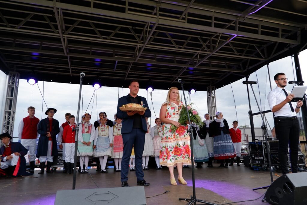 Starostami Dożynek byli: Pani Justyna Drywa oraz Pan Dawid Zandecki, którzy przekazali tradycyjny bochen chleba na ręce Burmistrza Rakoniewic oraz przewodniczącego Rady Miejskiej Krzysztof Krawczyk. Gospodarze tradycyjnie podzielili chleb wśród zebranych mieszkańców i uczestników Dożynek. Był również czas na część artystyczną, podczas której wystąpiły dzieci z przedszkola i szkoły z Ruchocic, Zespół taneczny Country, Kabaret Buczanki z Bucza. W trakcie trwania całej uroczystości były przygotowane atrakcje dla dzieci, poczęstunek dla wszystkich, oraz różnego rodzaju stoiska. Wieczorem swój występ na scenie miała Kapela Zza Winkla, a zaraz po nich DJ KIKSUU zaprosił wszystkich do tańca.
