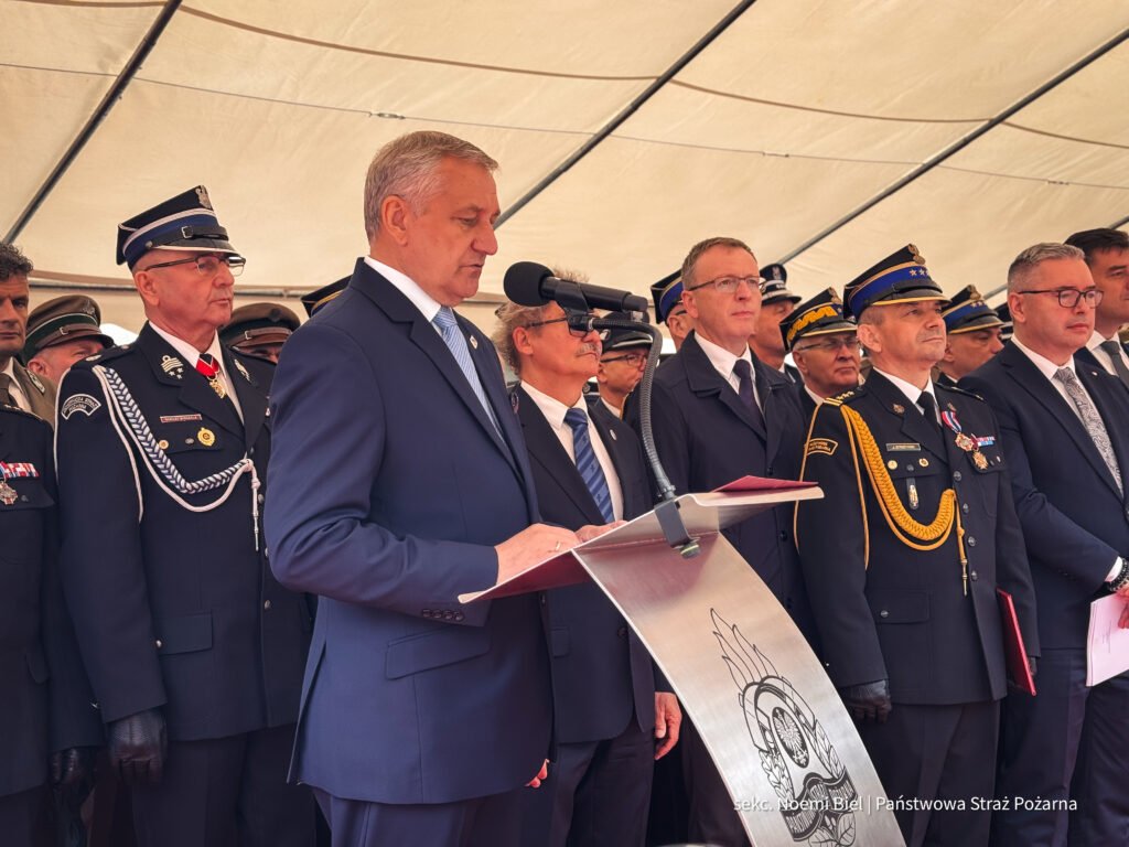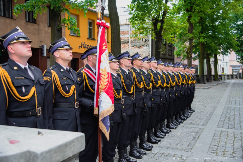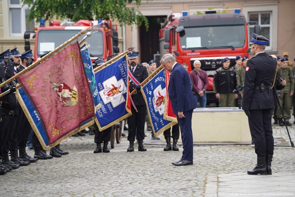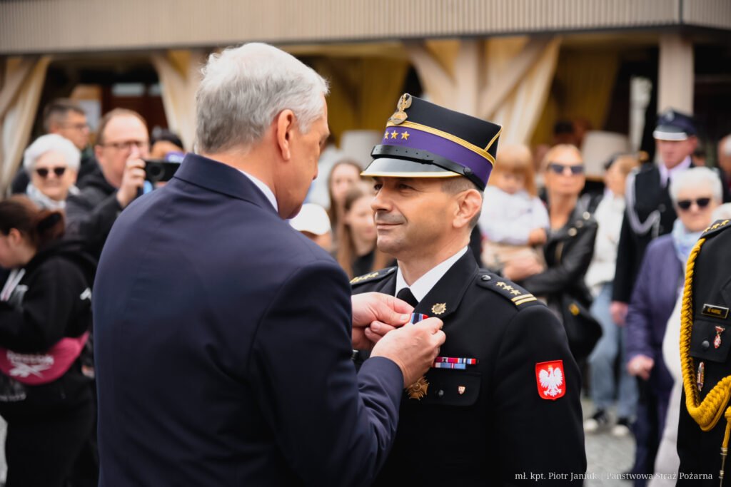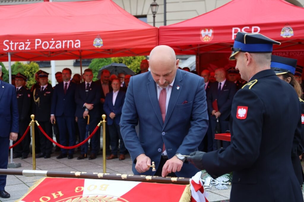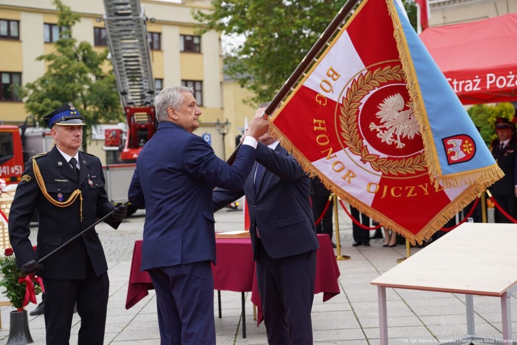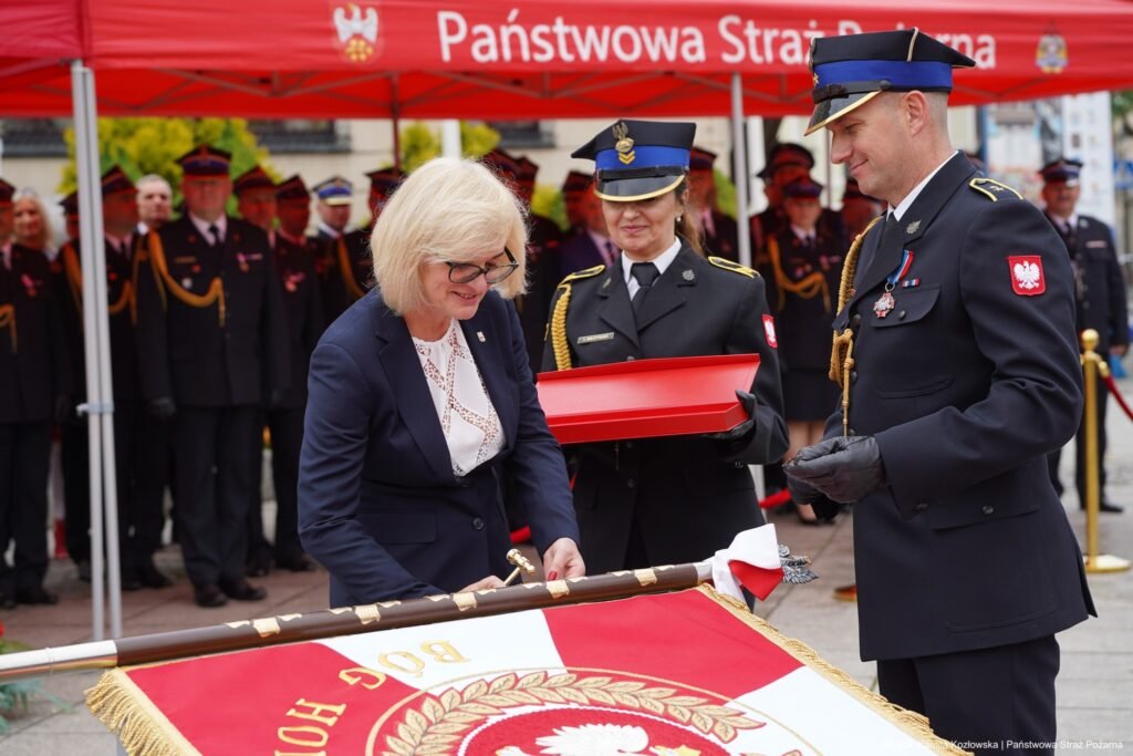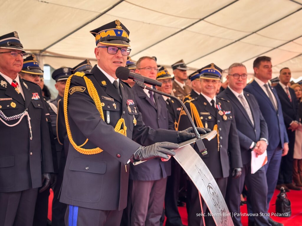 Na zakończenie wyraził głęboką wdzięczność wszystkim funkcjonariuszom – obecnym i byłym – za codzienną służbę i budowanie prestiżu jednostki. Podziękował również byłym komendantom, władzom samorządowym, lokalnym przedsiębiorcom, osobom prywatnym oraz wszystkim darczyńcom, którzy wsparli tę szlachetną inicjatywę. Szczególne podziękowania skierował do Ministra Spraw Wewnętrznych i Administracji, Komendanta Głównego oraz Komendanta Wojewódzkiego PSP za nieocenione wsparcie przy realizacji przedsięwzięcia nadania sztandaru.