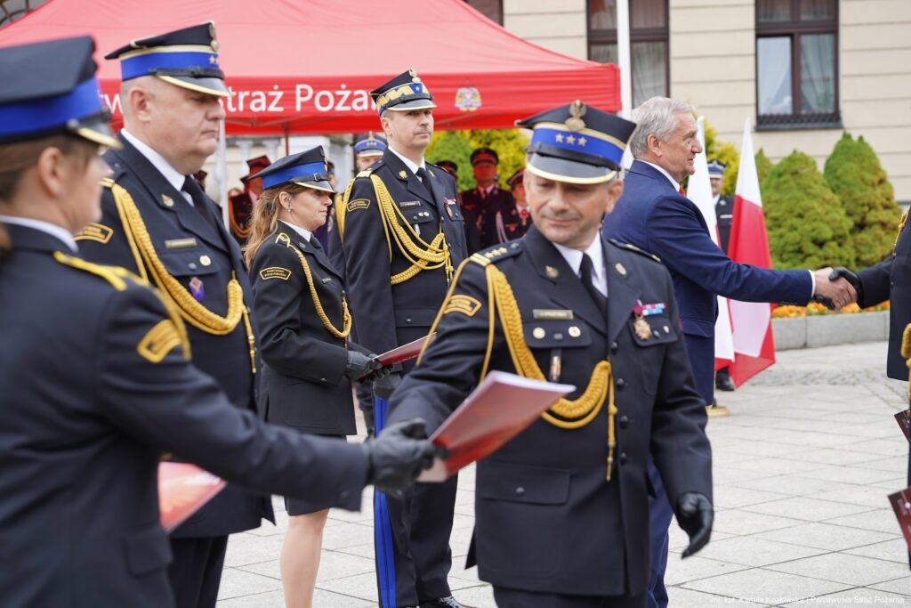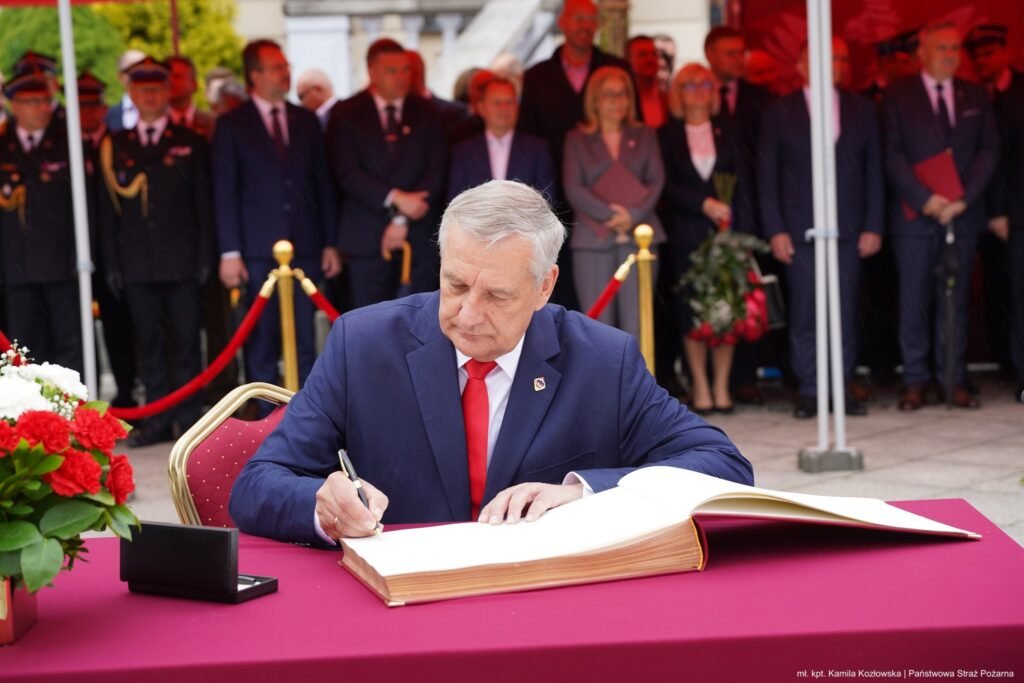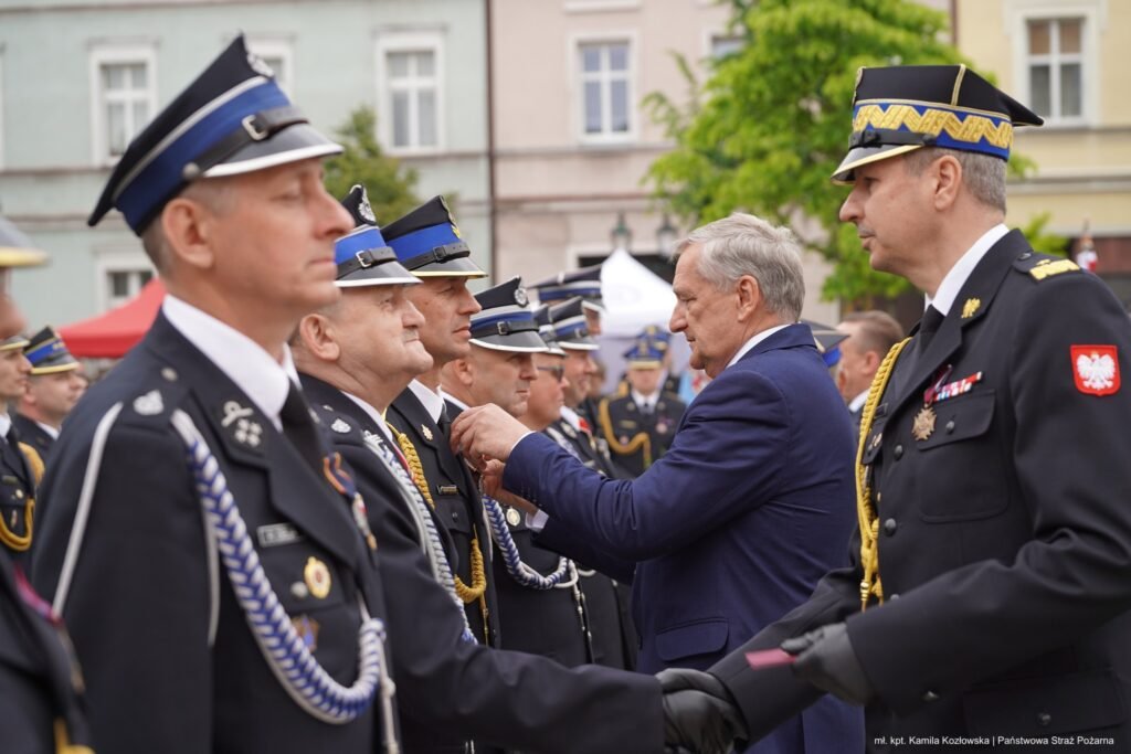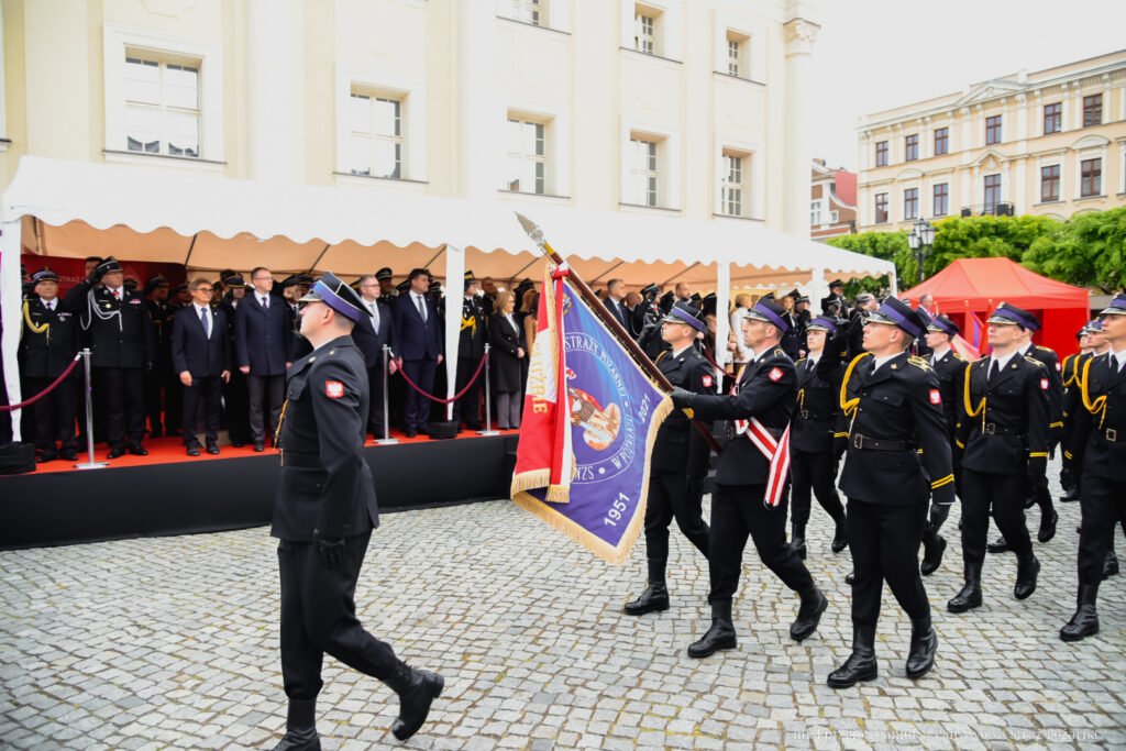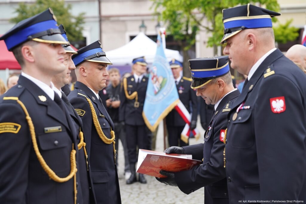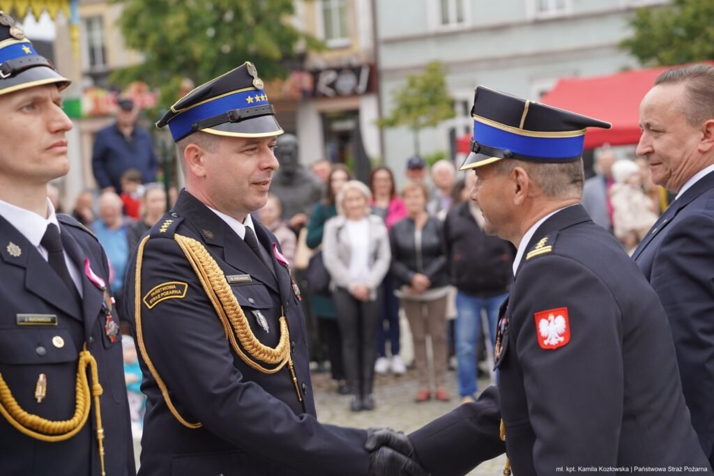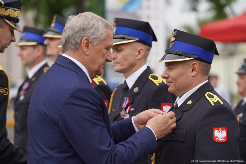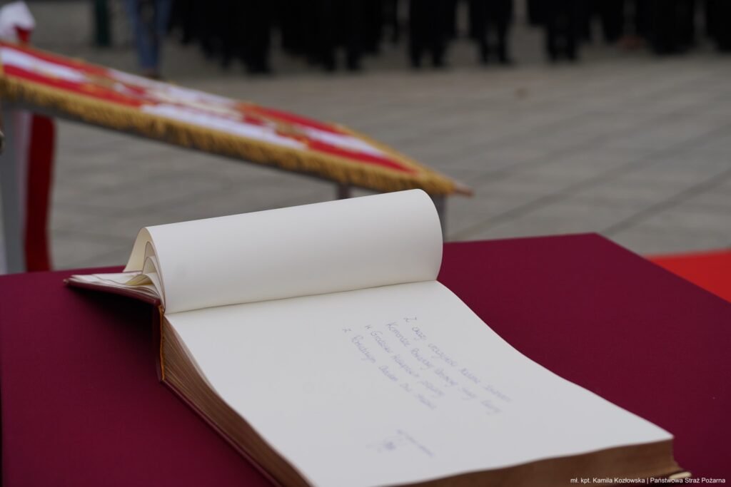 Na zakończenie wyraził głęboką wdzięczność wszystkim funkcjonariuszom – obecnym i byłym – za codzienną służbę i budowanie prestiżu jednostki. Podziękował również byłym komendantom, władzom samorządowym, lokalnym przedsiębiorcom, osobom prywatnym oraz wszystkim darczyńcom, którzy wsparli tę szlachetną inicjatywę. Szczególne podziękowania skierował do Ministra Spraw Wewnętrznych i Administracji, Komendanta Głównego oraz Komendanta Wojewódzkiego PSP za nieocenione wsparcie przy realizacji przedsięwzięcia nadania sztandaru.