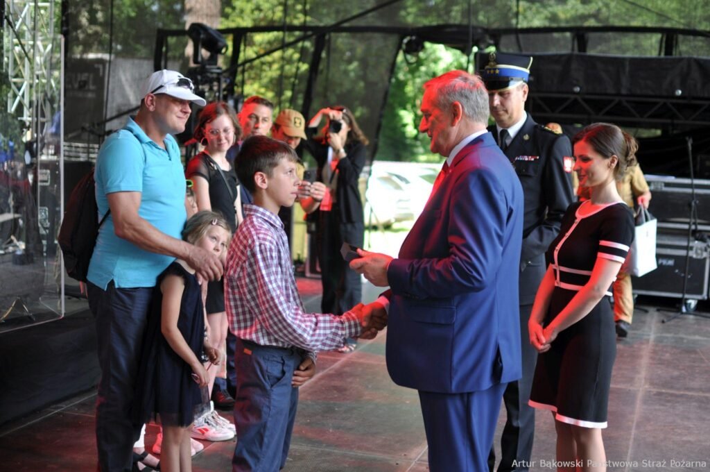 Podczas festynu sekretarz stanu w MSWiA p. Wiesław Szczepański wraz z zastępcą Komendanta Głównego PSP st. bryg. Grzegorzem Szyszko, oraz Wojewodą Wielkopolską Agatą Sobczyk i Wielkopolskim Komendantem Wojewódzkim PSP st. bryg. Jackiem Strużyńskim wręczyli 13-letniemu Danielowi z powiatu gostyńskiego Odnakę Komendanta Głównego PSP „Iuvenis Forti” za uratowanie swojej rodziny podczas pożaru oraz skuteczne powiadomienie służb ratunkowych.