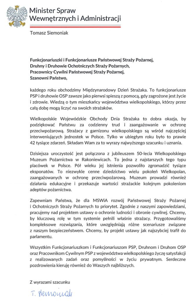 - Pan Jerzy Majewski Prezes Koła Emerytów przy Szkole Aspirantów Państwowej Straży Pożarnej w Poznaniu.