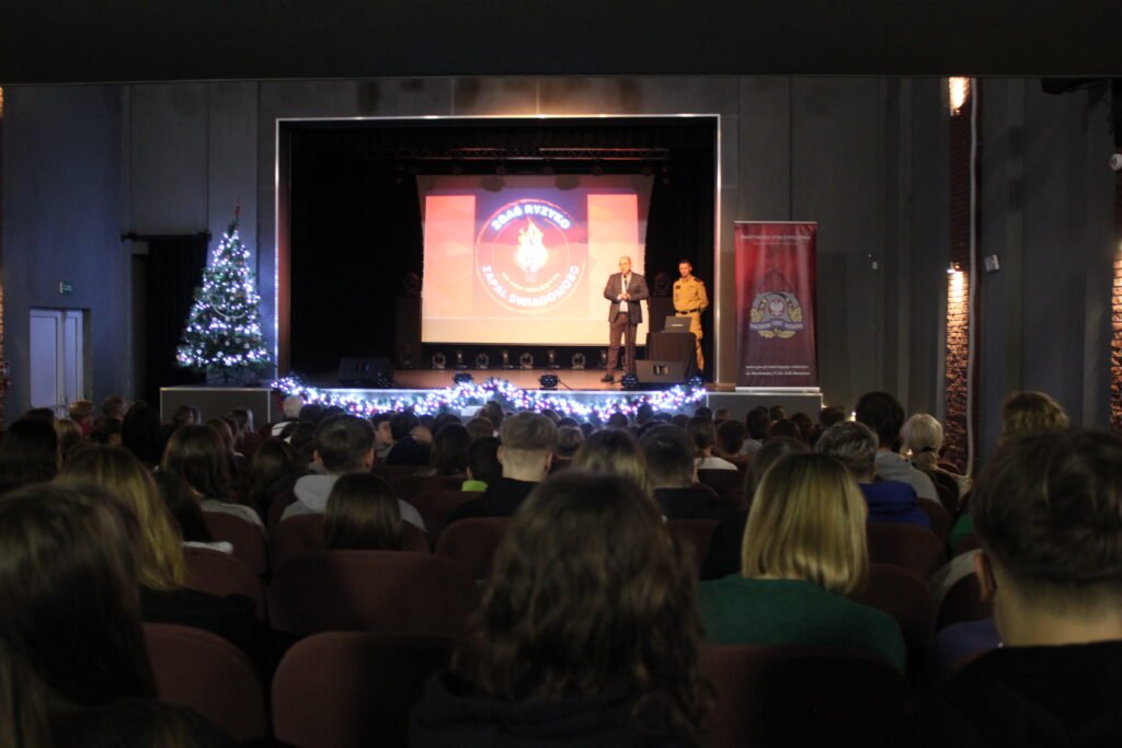 Po zakończeniu seansu, przedstawiciel Komendy Powiatowej Państwowej Straży Pożarnej w Wolsztynie – mł. kpt. Hubert Pukacki, przypomniał o zagrożeniach związanych z trwającym okresem grzewczym i ze zbliżającymi się świętami Bożego Narodzenia. Spotkanie było też wspaniałą okazją, do zapoznania uczestników wydarzenia z trwającą kampanią edukacyjną „Zgaś ryzyko – zapal świadomość!”.