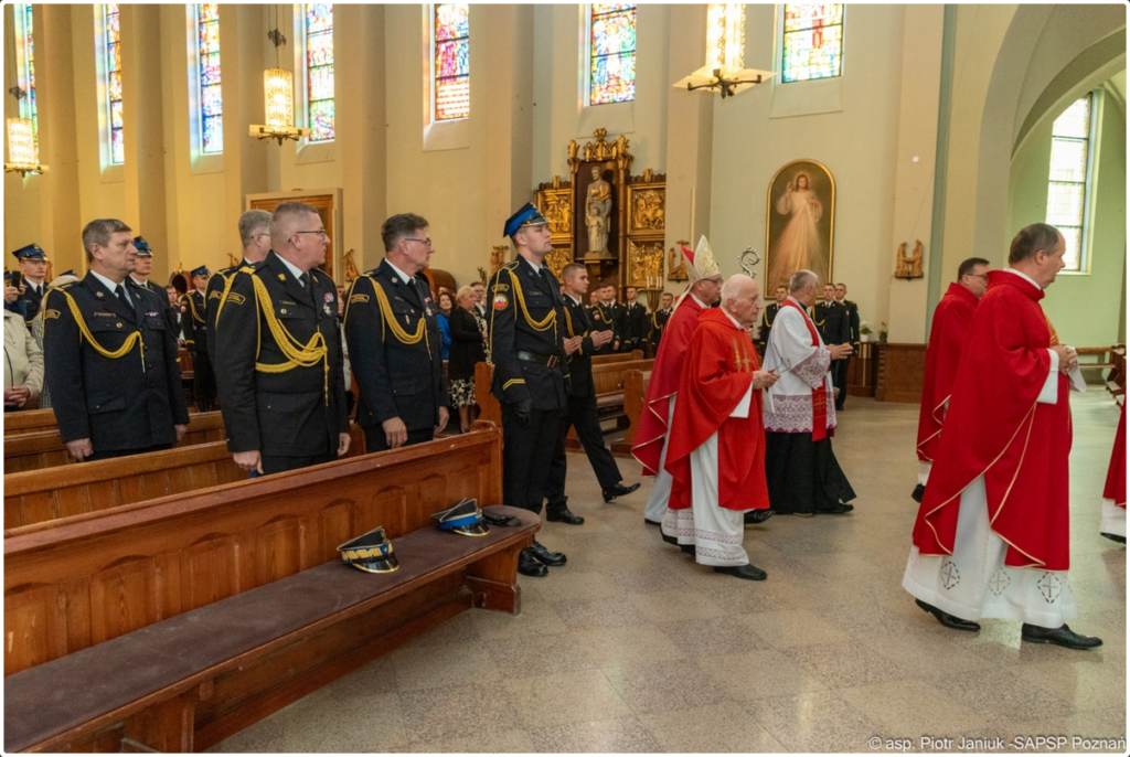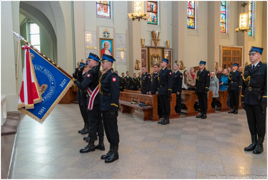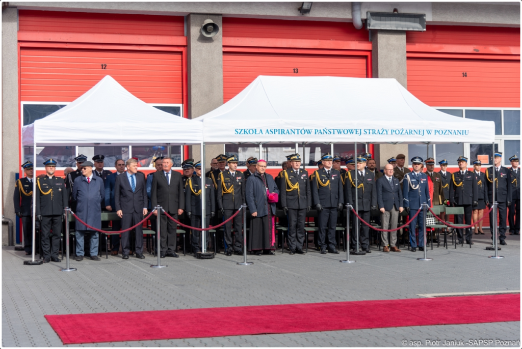 W dniu 9.10.2023r. w Szkole Aspirantów Państwowej Straży Pożarnej w Poznaniu odbyła się uroczystość ślubowania słuchaczy kształcenia dziennego w zawodzie technik pożarnictwa, turnusu XXXIII Państwowej Straży Pożarnej. Uroczystość rozpoczęła się Mszą Świętą koncelebrowaną, odprawioną w kościele parafialnym pod wezwaniem Świętej Trójcy na Poznańskim Dębcu, której przewodniczył Jego Ekscelencja Ksiądz Biskup Jan Glapiak – Wikariusz Generalny Archidiecezji Poznańskiej.